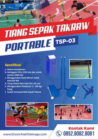 Sepaktakraw dalam permainannya sudah disebutkan bahwa pemain diajarkan untuk memainkan bola dengan melewati net. Net akan sangat bergantung pada tiang, si penyangga net. Oleh karena itu, dibutuhkan tiang untuk sebuah kelangsungan sepaktakraw. disini, kami men Jual Tiang Sepaktakraw Portable Harga Grosir Pabrik.